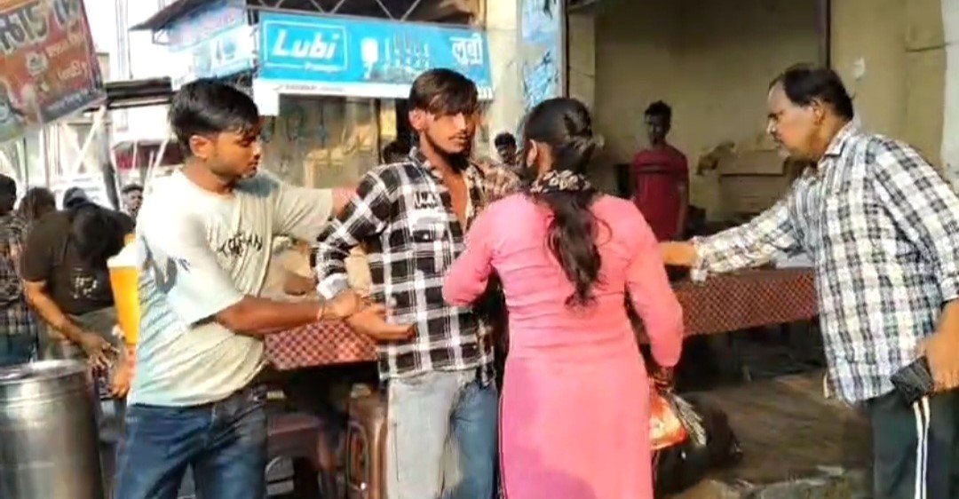 प्रत्यक्षदर्शियों ने बताया कि युवती का भाई उनके प्रेम संबंध का विरोध कर रहा था। विवाद के दौरान गुस्साए प्रेमी ने सड़क किनारे रखी ईंट उठाकर खुद के सिर पर वार कर लिया। युवक खून से लथपथ हो गया और युवती लगातार चिल्लाती रही — “भैया उसे छोड़ दो!” इस बीच मौके पर बड़ी संख्या में लोग जमा हो गए।